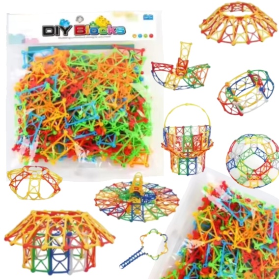 Klocki Konstrukcyjne Zestaw Patyczki Słomki Edukacyjne Kolorowe 204 ele