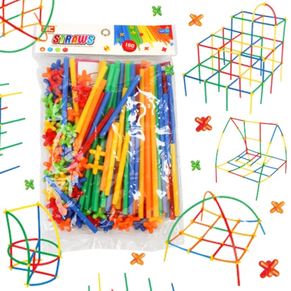 Klocki Słomki Konstrukcyjne Kreatywne 3D Patyczki Rurki Zestaw 160 ele