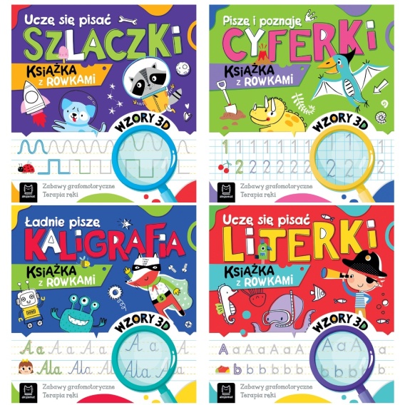 Dzięki kartonowym stronom z wyżłobionymi rowkami dziecko może  ćwiczyć pisanie - kredką, ołówkiem, a nawet palcem. Powtarzalne ruchy utrwalają kształty liter, cyfr i szlaczków, co znacznie ułatwia późniejszą naukę w szkole. To nauka i zabawa w jednym - dzieci czerpią radość z pierwszych sukcesów, a rodzice mają pewność, że rozwój ich pociech przebiega w najlepszy sposób.