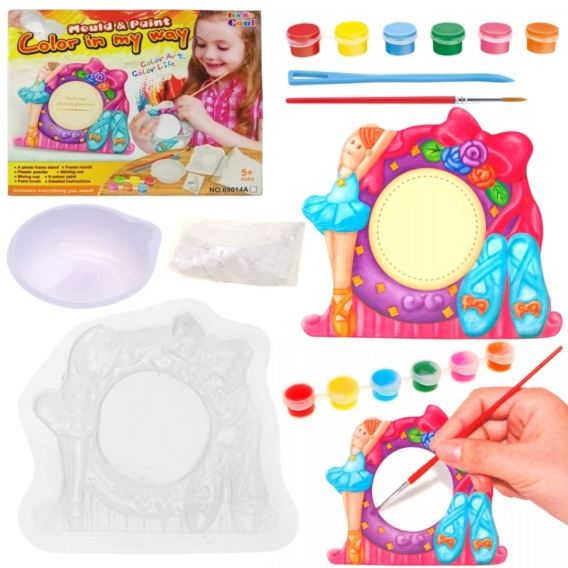 Farbki dołączone do zestawu: zestaw zawiera farbki, które umożliwiają dziecku pomalowanie ramki według własnych upodobań i fantazji.