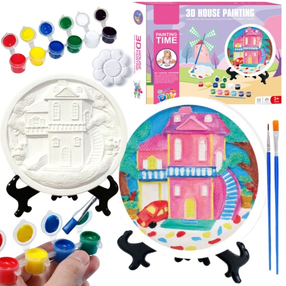 ZESTAW KREATYWNY ARTYSTYCZNY DOM DO MALOWANIA FARBKI GIPS MAŁY ARTYSTA 3D