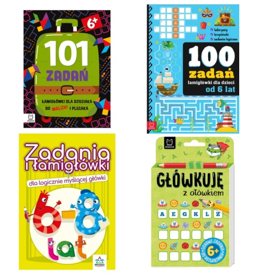 Przejście z etapu przedszkolnego do wczesnoszkolnego to ogromne wyzwanie dla umysłu każdego dziecka. Ten kompletny pakiet 4 obszernych książek z łamigłówkami to potężna i mądra siłownia dla rozwijającego się mózgu. Zestaw oferuje łącznie setki intrygujących wyzwań idealnie dopasowanych do możliwości sześciolatków: od krzyżówek obrazkowych, przez pierwsze zadania matematyczne, aż po skomplikowane labirynty i szyfry. Regularne rozwiązywanie tego typu zagadek fenomenalnie wyrabia nawyk długotrwałej koncentracji, uczy analitycznego myślenia i oswaja z pracą z ołówkiem. To niezwykle wartościowy pakiet, który skutecznie odciąga dziecko od gier na smartfonie, dając mu w zamian rozwijającą rozrywkę, która zaprocentuje w szkolnej ławce.
