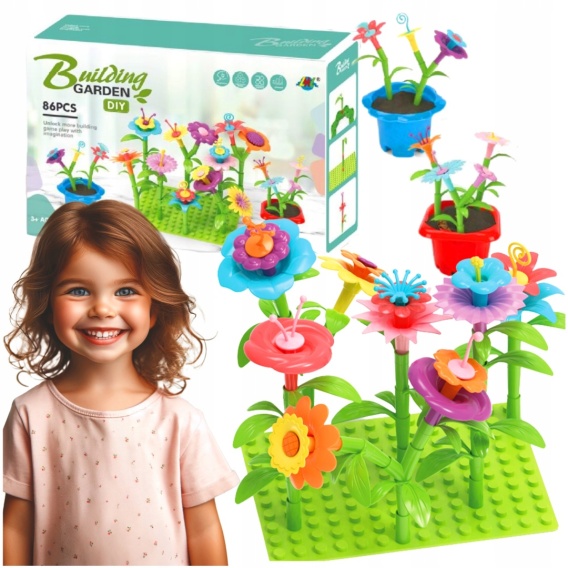 ZESTAW KLOCKI KWIATKI OGRÓD KONSTRUKCYJNE 86 EL. KWIATY ZABAWA W OGRODNIKA