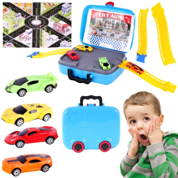 Zestaw z samochodami w walizce SAMOCHODZIKI SPORTOWE Miasto do zabawy
